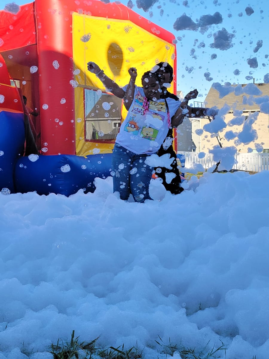 Kids go wild for it, and adults can’t resist it either. The party includes a sound system where we bring kid-friendly tunes and fun accessories like beach balls to enjoy in the foam.