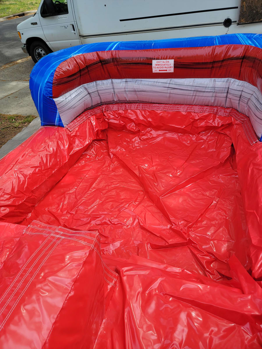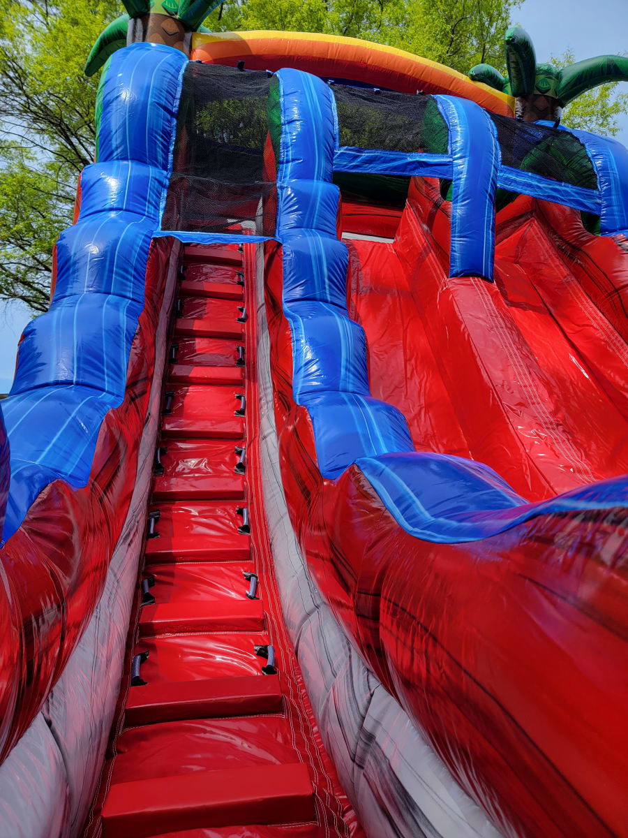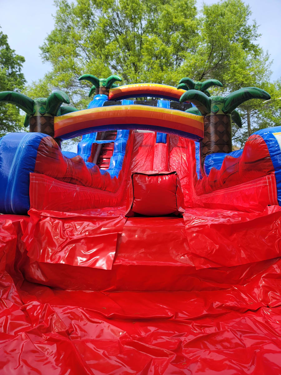Our very own 18’ Double Lane Baja Blast water slide. This will be a great hit for the kids and parents. It has a center climb slide making it easier to climb. Both can race down the slide together. It is double lane and has a very large pool for everyone to splash around in at the bottom.