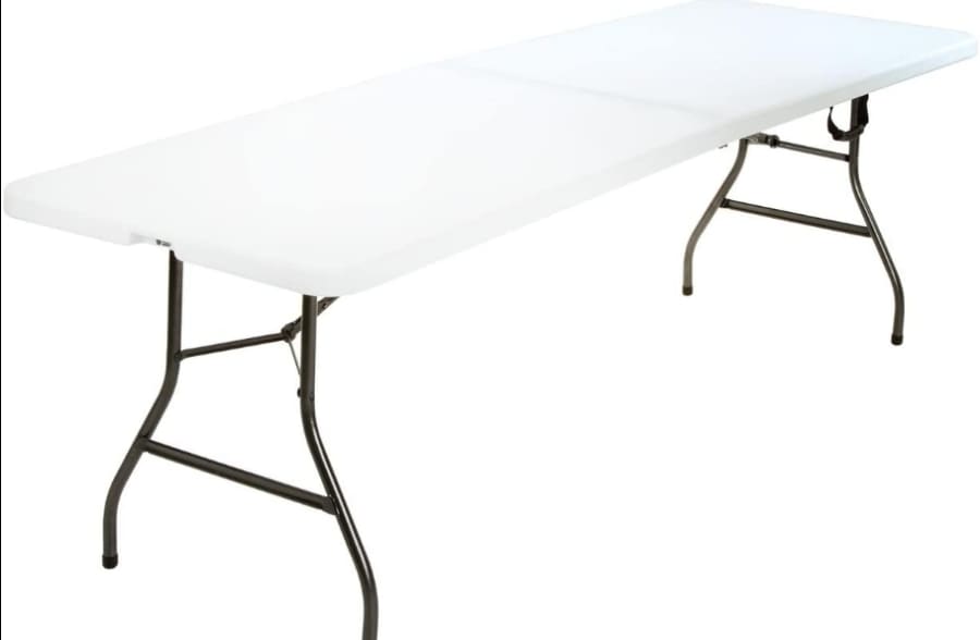 This is a folding white table that is perfect for indoor or outdoor events. They are plastic, the plain design and color scheme makes them suit all kinds of themes and decors. The lightweight design of this table means it is easy to move around, and setting it up takes just a few seconds.